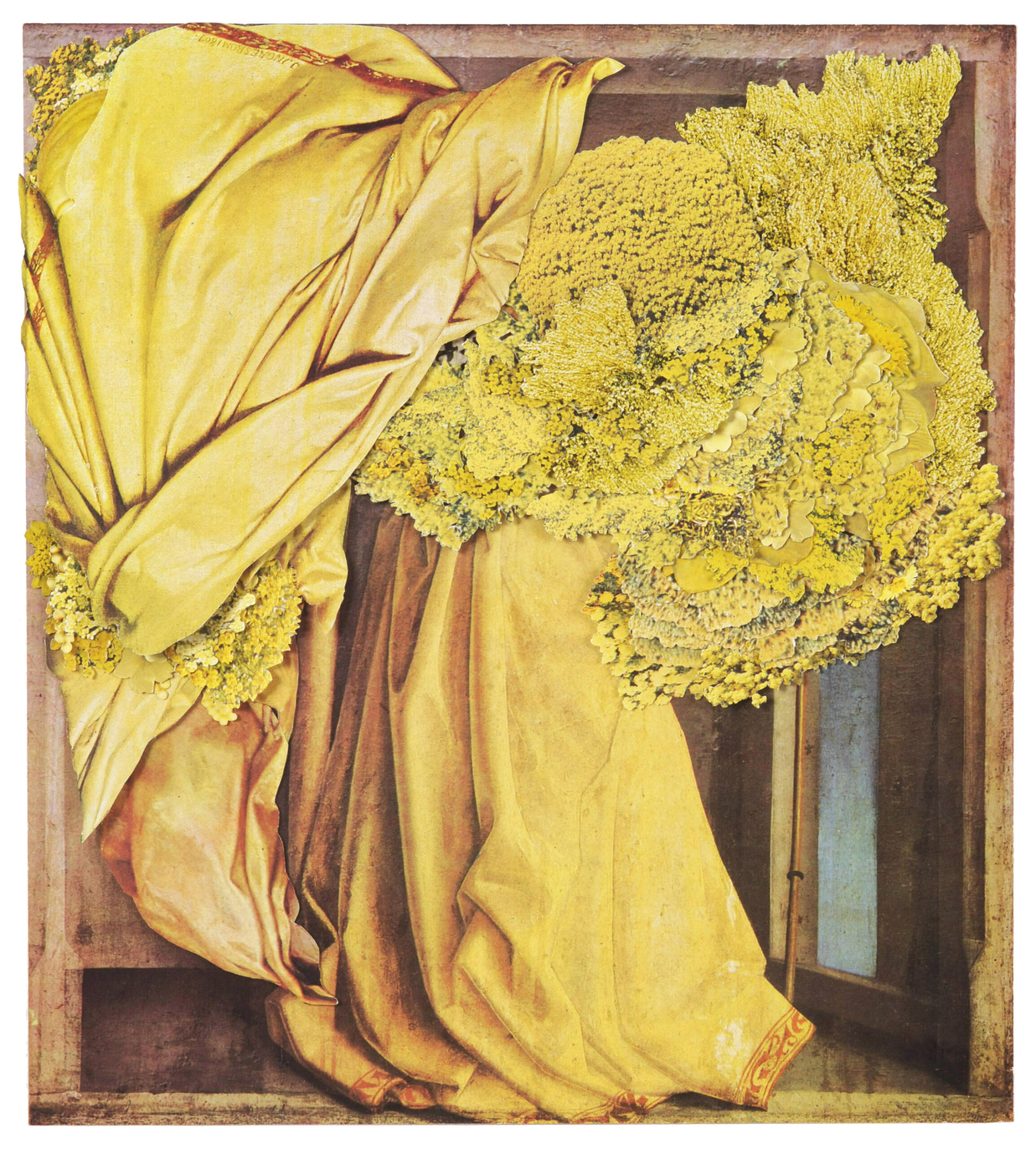 Rosana Schoijett is one of the main artists working with photography in her generation in Argentina. Since the ‘90s she has developed several series which have a strong conceptual approach as well as an exquisite formal resolution. In the past three years she has temporarily moved away from capturing photographic images in order to focus on making collages using photographs printed in vintage high quality books. For this purpose she searches second-hand bookstores to find these books, often devoted to images of art or nature, which are beautifully printed on velvety papers, and then builds laborious pieces overlapping cut-outs from the same page from these different copies of one published title. They are hand-sewn to create 3-D relief, and some times framed in hinged glass panels. As a photographer working in the digital age, she became interested in the book as fetish and in a method of production that deliberately ignores anything digital. She is also compelled to revisit the long standing tradition, from surrealism to neo-conceptualism, of women artists making collages.