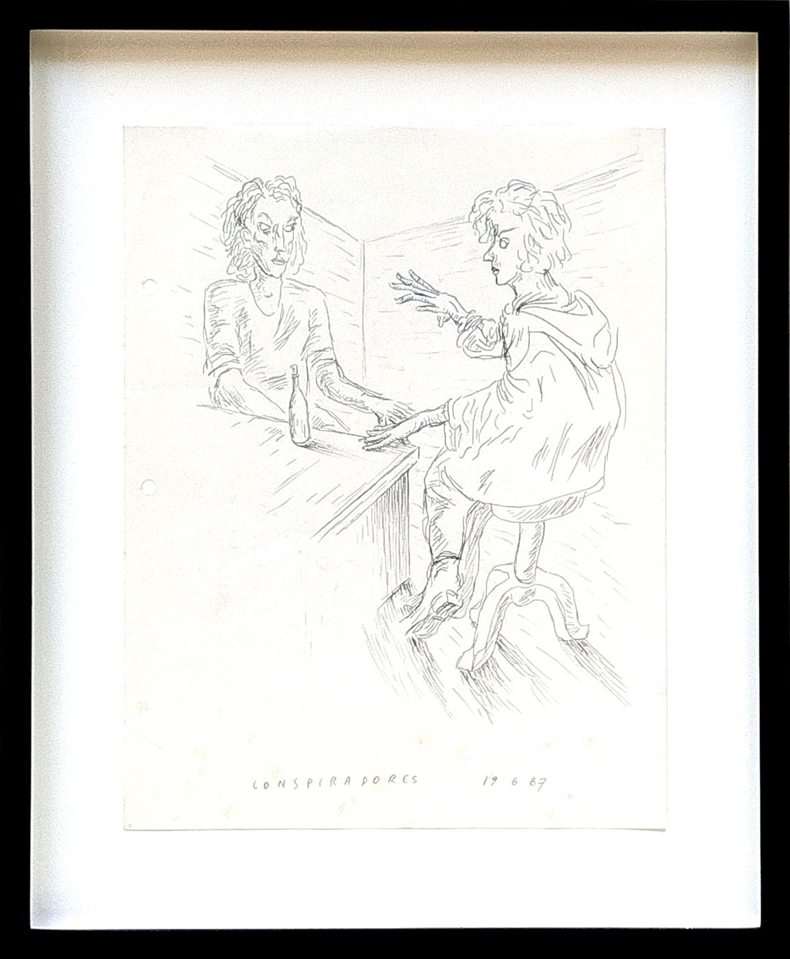 Recientemente emergió otra caja, esta vez con dibujos de 1987, que son los que se exhiben en esta ocasión. En ellos ya se perciben la destreza del artista y su mirada incisiva sobre su tiempo y su entorno: Lindner ha sido siempre, dentro de su propio vocabulario visual, un retratista de lo social. Una serie de retratos masculinos se titula “Gente común y corriente”. Aparecen referencias a la cultura joven de fines de los años ochenta: los “raros peinados nuevos”, las élites contraculturales; incluso se menciona “Gran Hermano” como concepto, mucho antes de la existencia del programa televisivo. Un autorretrato delata la fascinación del joven artista por los dibujos de Giacometti.