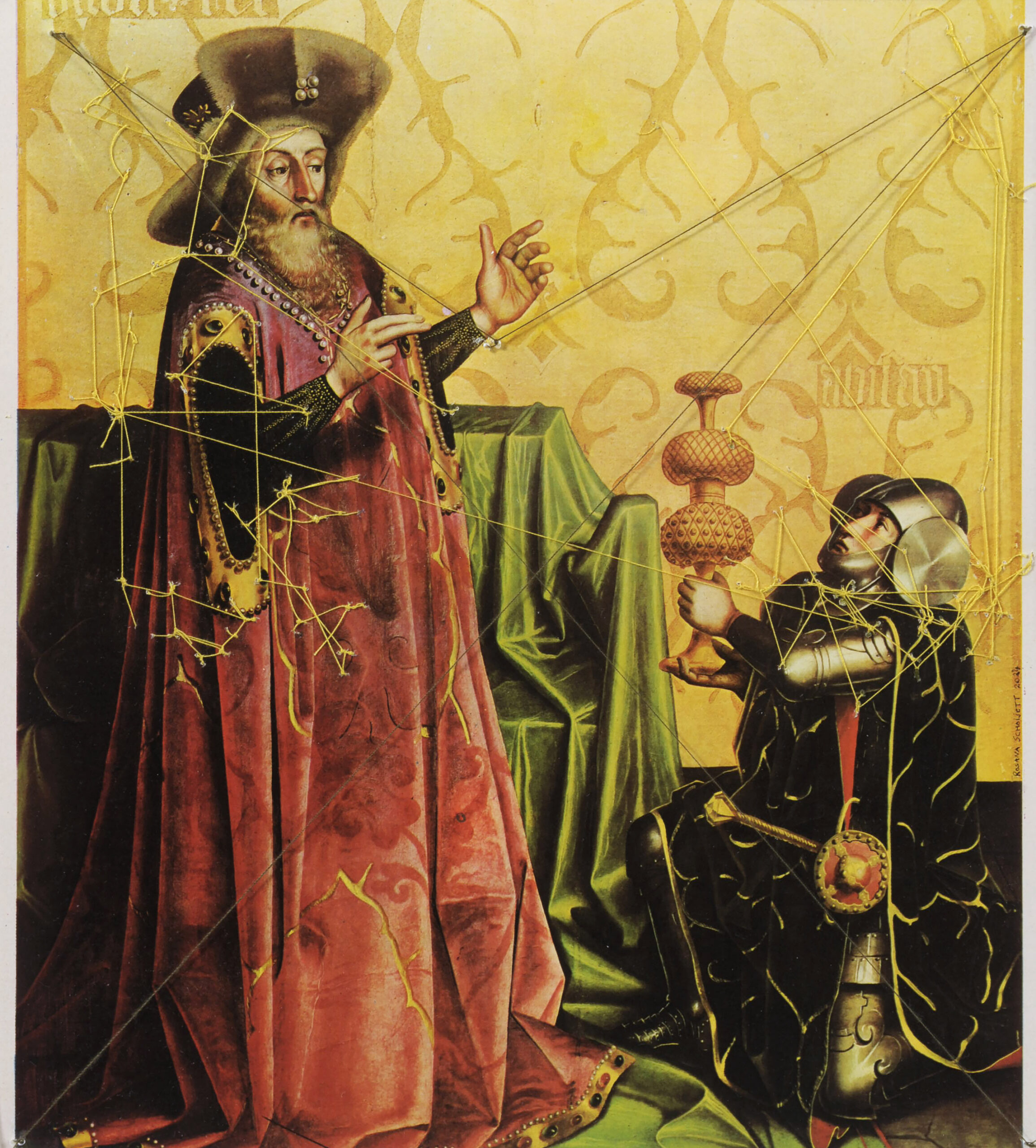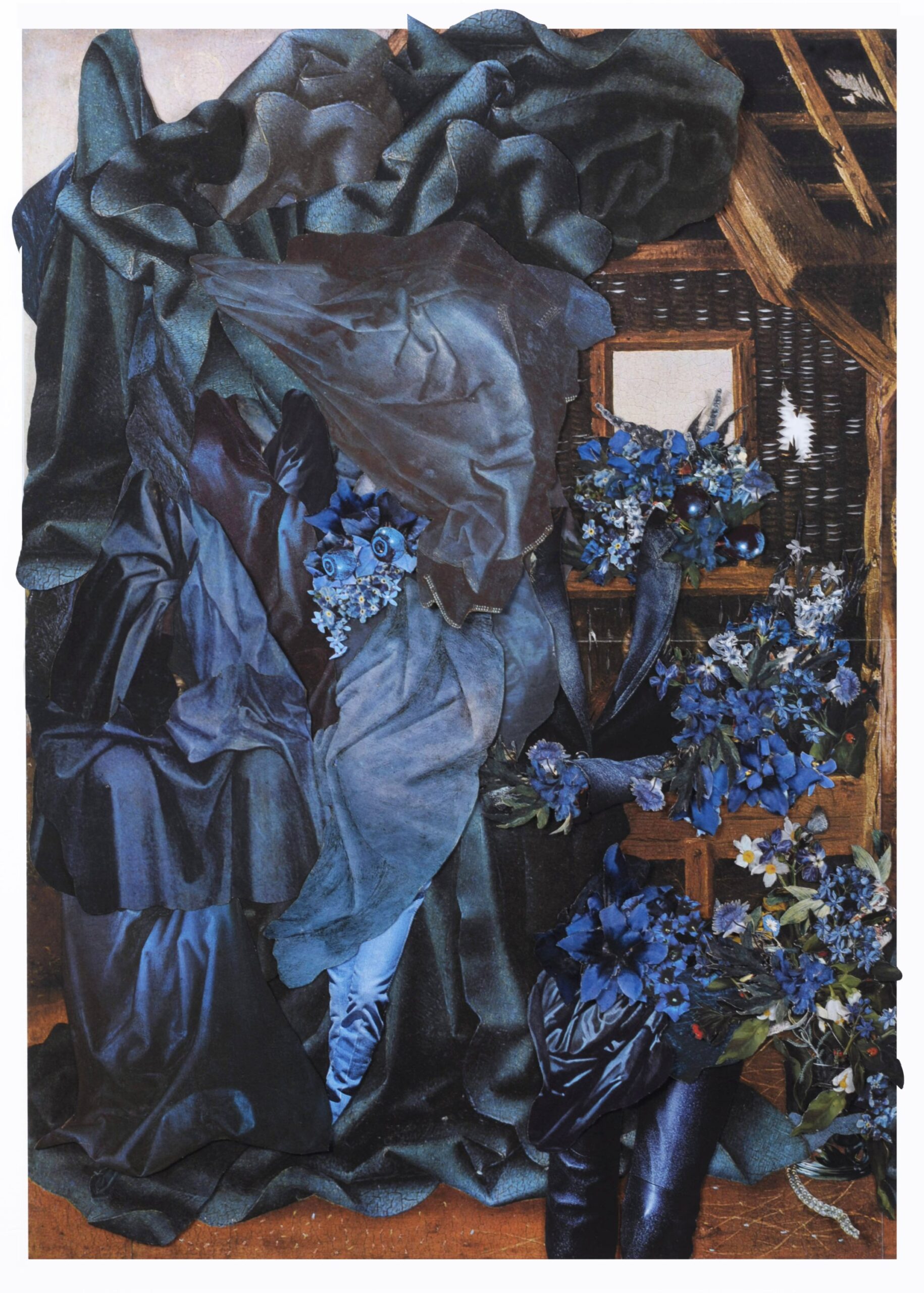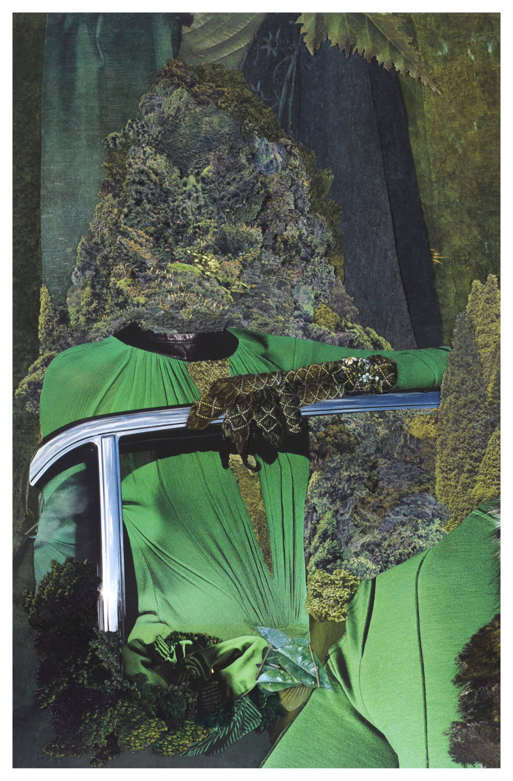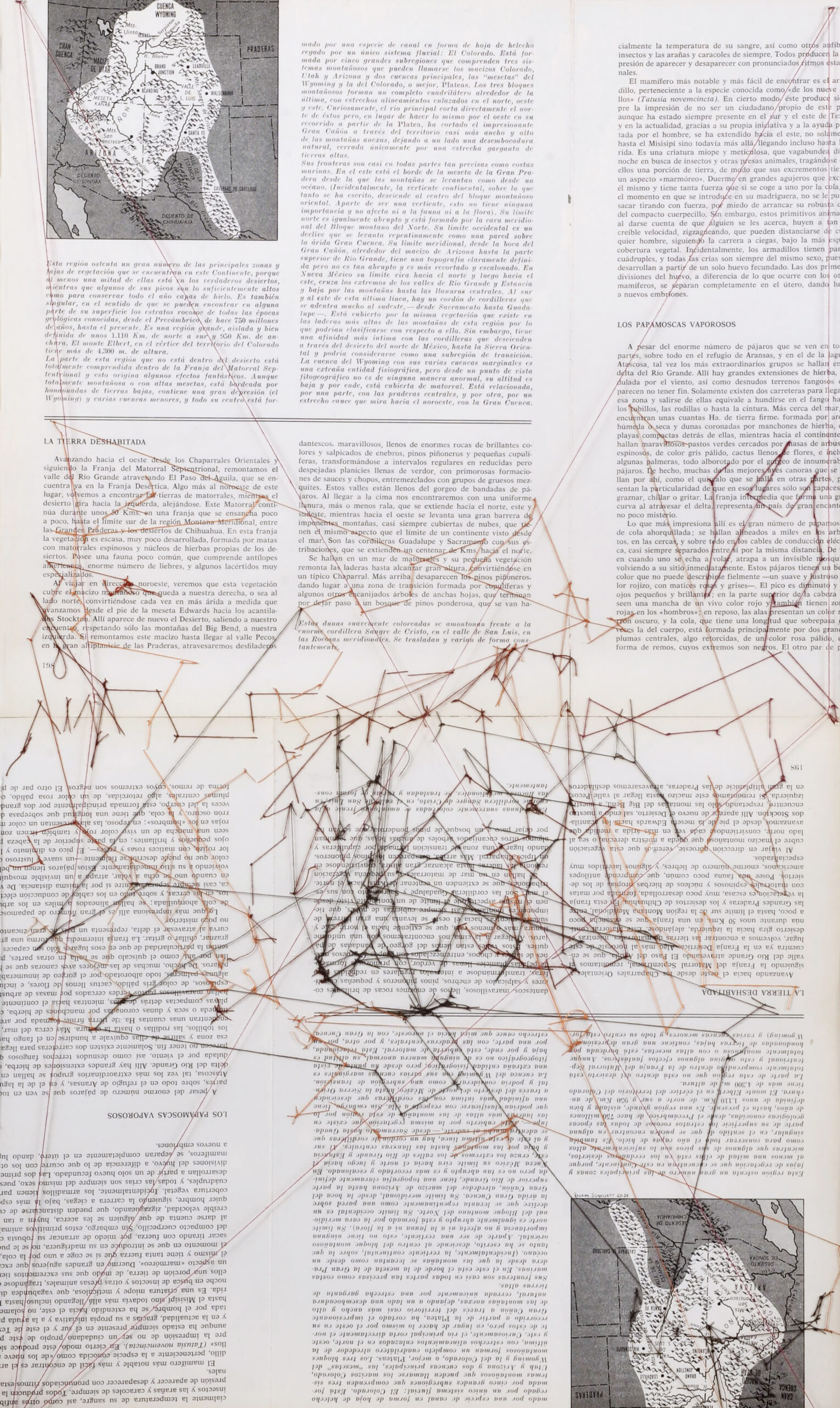 Desde hace una década su producción se centra en fotografías ya impresas provenientes de publicaciones antiguas de gran calidad, a partir de las cuales elabora fotomontajes minuciosos, cortando con cutter bisturí las láminas ilustradas de libros de geografía, arte y botánica. Luego sutura los recortes entre sí con hilo y aguja, generando una nueva imagen ligeramente tridimensional. Esta reconfiguración de materiales busca escenificar la mutación continua a la que estamos expuestos y expuestas como especie, dando forma a un nuevo mundo a partir de fragmentos de realidad impresa, un oasis de fecundidad y abundancia surgido de la destrucción de su propia fuente. Enfocada en su interés por la estructura editorial como sistema de transmisión de conocimiento, la artista enmarca estos collages en formato retablo, permitiendo así la manipulación por parte del observador de los paneles doble faz, evocando la acción de dar vuelta las páginas de un libro y su potencial transformador.